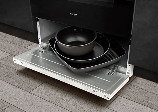 To przemyślane rozwiązanie, doceni każdy miłośnik porządku i funkcjonalności. Umieszczony w dolnej części urządzenia otwierany schowek, doskonale nadaje się do przechowywania patelni, pokrywek, form do pieczenia oraz innych przydatnych akcesoriów. To dodatkowa, łatwo dostępna przestrzeń, dzięki której organizacja kuchni staje się prostsza, a gotowanie jeszcze bardziej komfortowe.